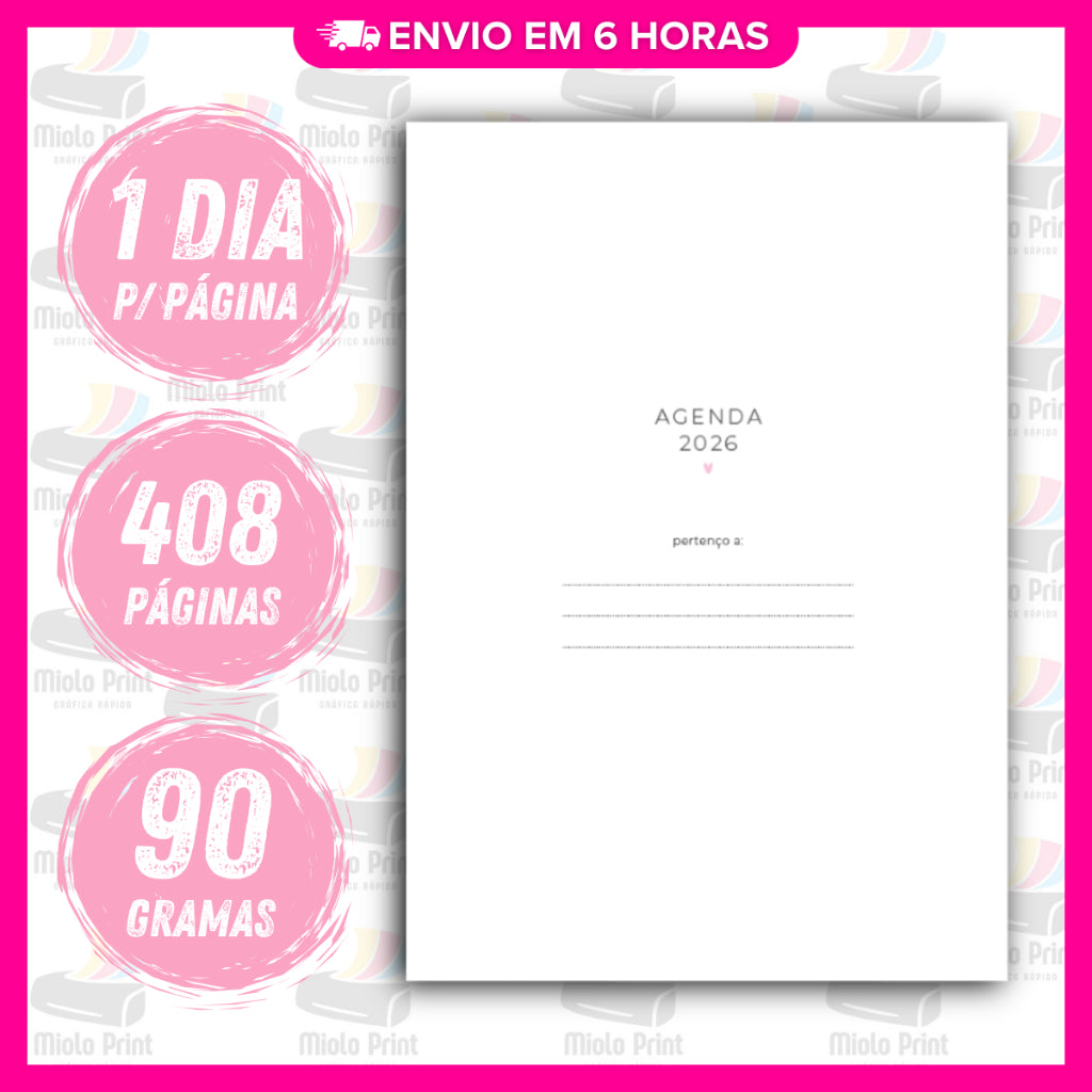 Miolo Impresso Agenda BP Rosa 1DPP 2026 | Tamanho A5 | Papel 90gr