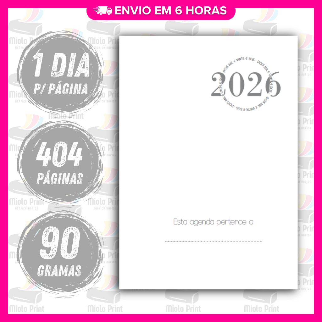 Miolo Impresso Agenda Comercial 1DPP 2026 | Tamanho A5 | Papel 90gr