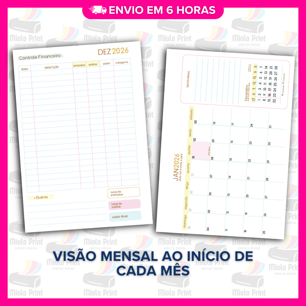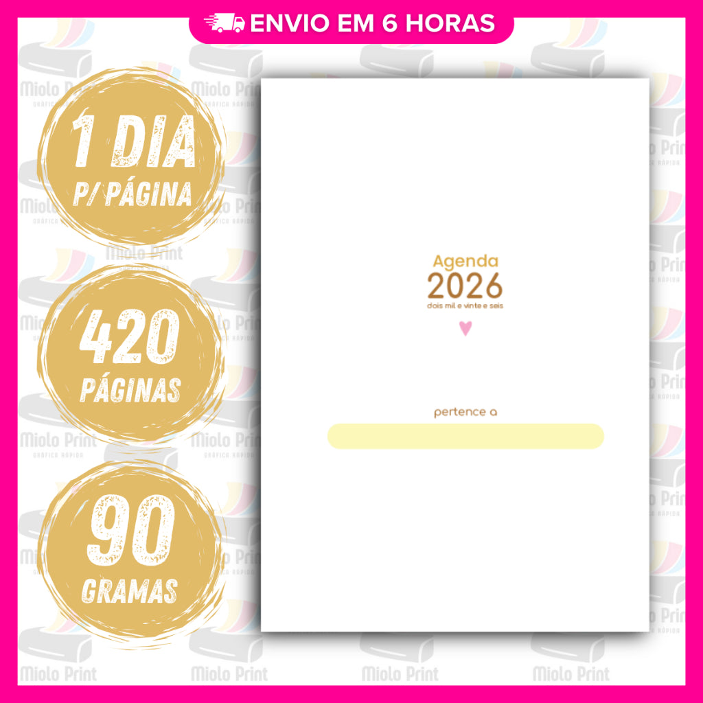 Miolo Impresso Agenda Fofinha 1DPP 2026 | Tamanho A5 | Papel 90gr