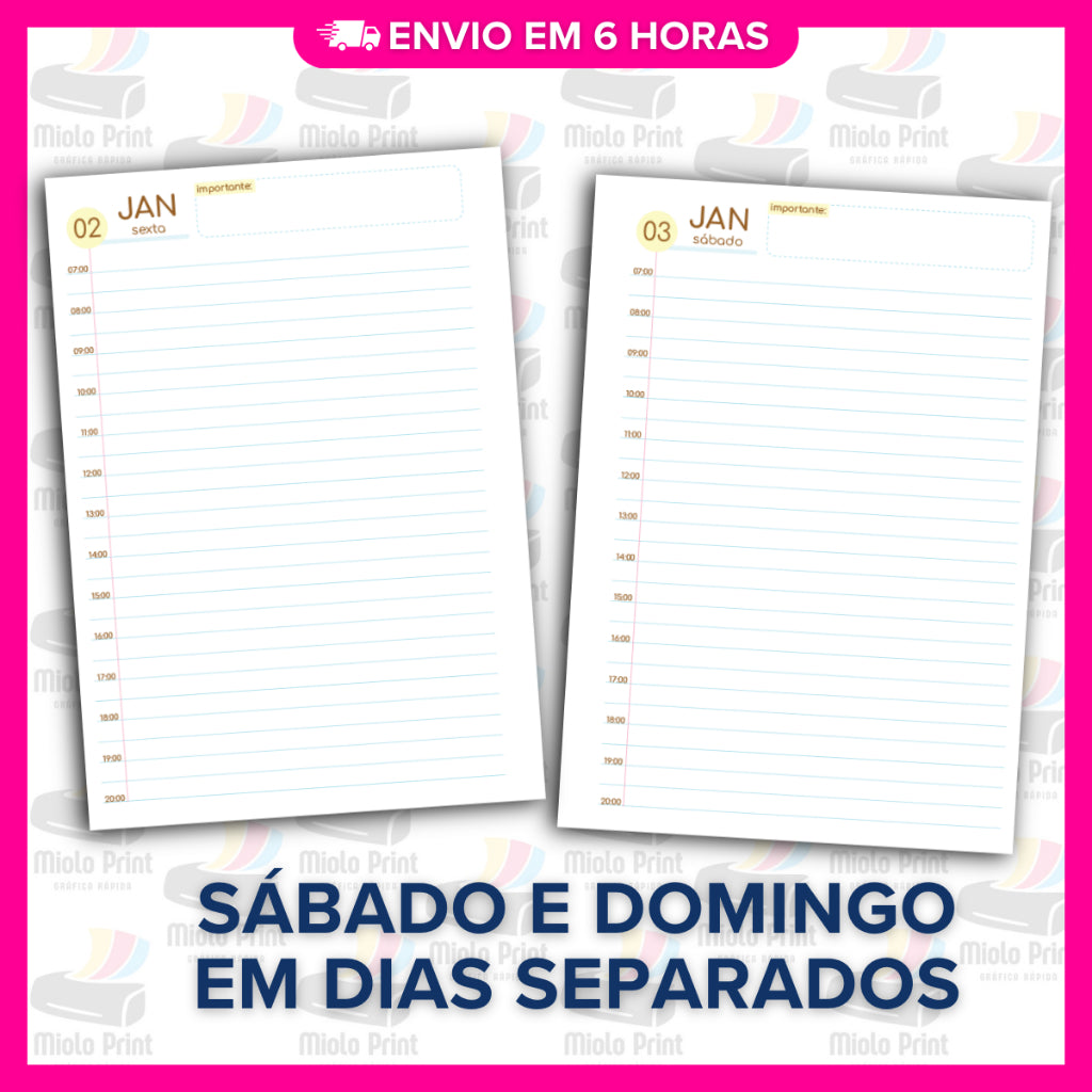 Ideal para produção de agendas personalizadas! Miolo impresso em papel 90g (FOLHAS SOLTAS), com alta qualidade e resistência, perfeito para quem busca agilidade, economia de tempo e acabamento profissional. Evita falhas de impressão, tinta borrada e retrabalho. Vai prontinho para uso, facilitando a rotina de quem trabalha com encadernação artesanal.