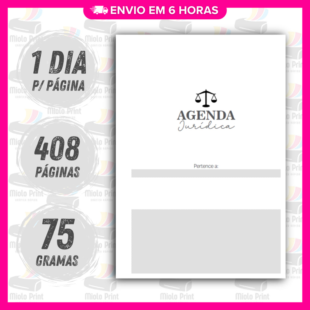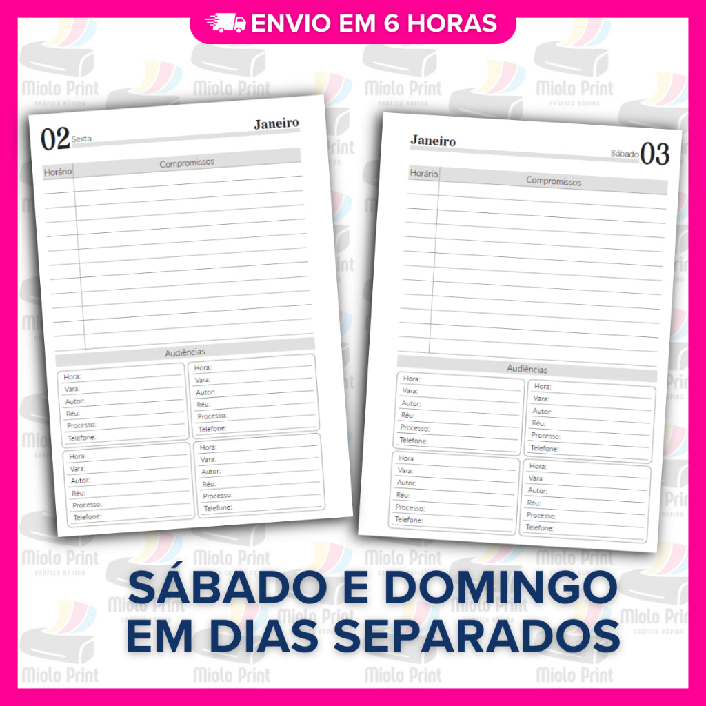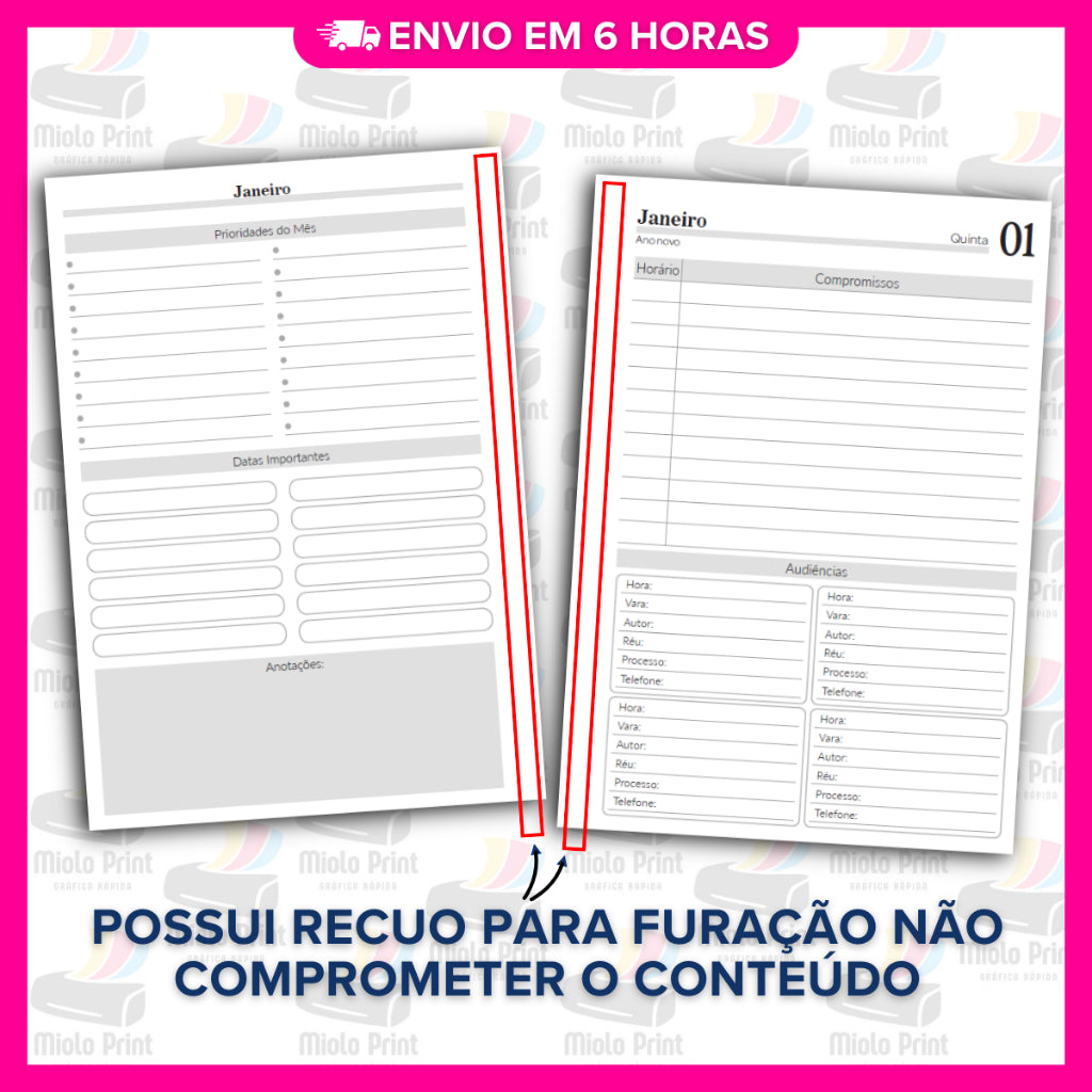 Miolo Impresso Agenda Jurídica 1DPP 2026 | Tamanho A5 | Papel 75gr